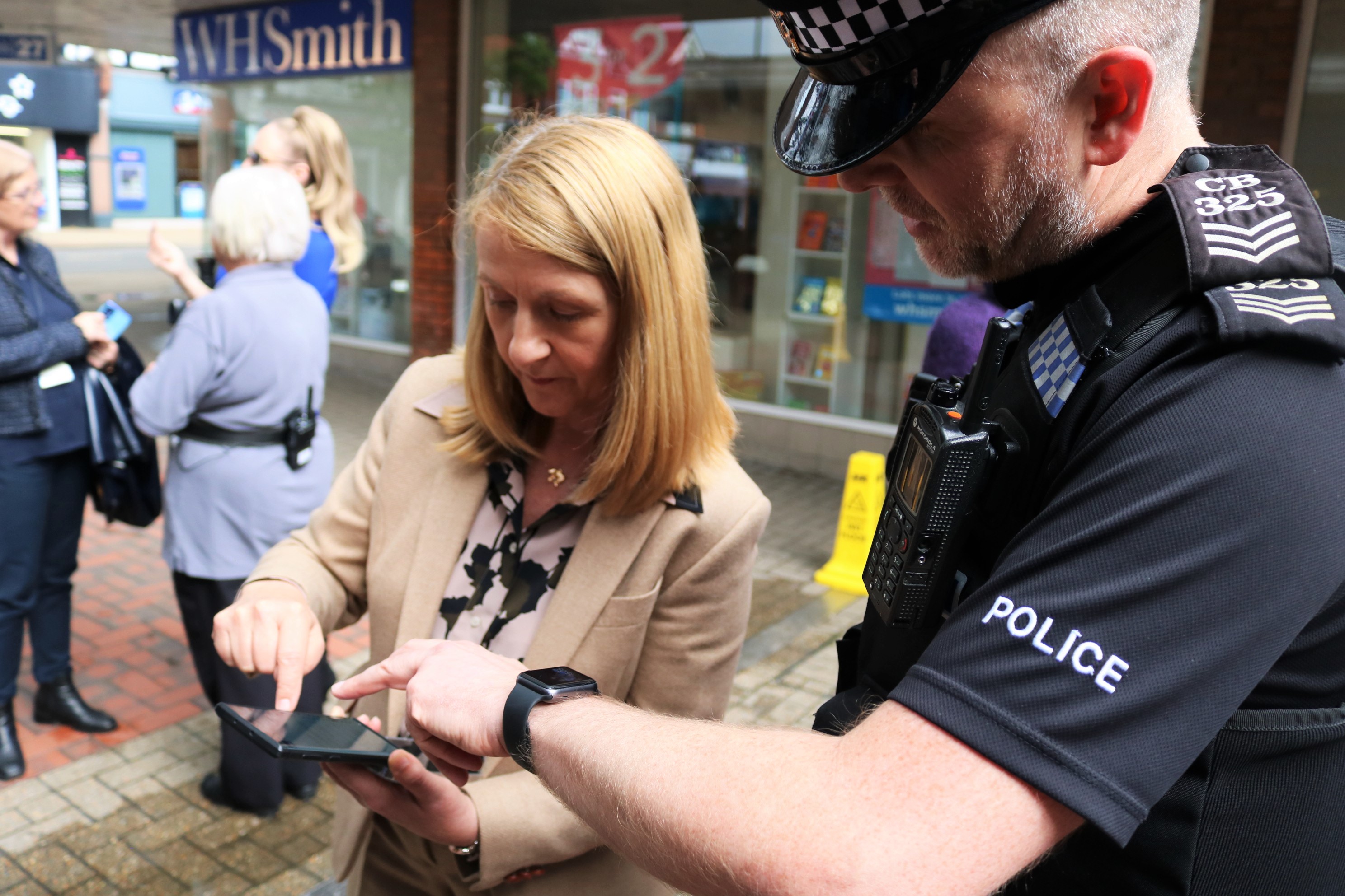 Earlier in the week, PCC Katy Bourne visited Burgess Hill and East Grinstead (alongside police officers, PCSOs, Sussex Police Business Crime Lead Chris Neilson, business owners and local councillors) to hear how retailers such as Superdrug, Wilko’s and McDonald’s are finding the app and how it benefits their businesses.