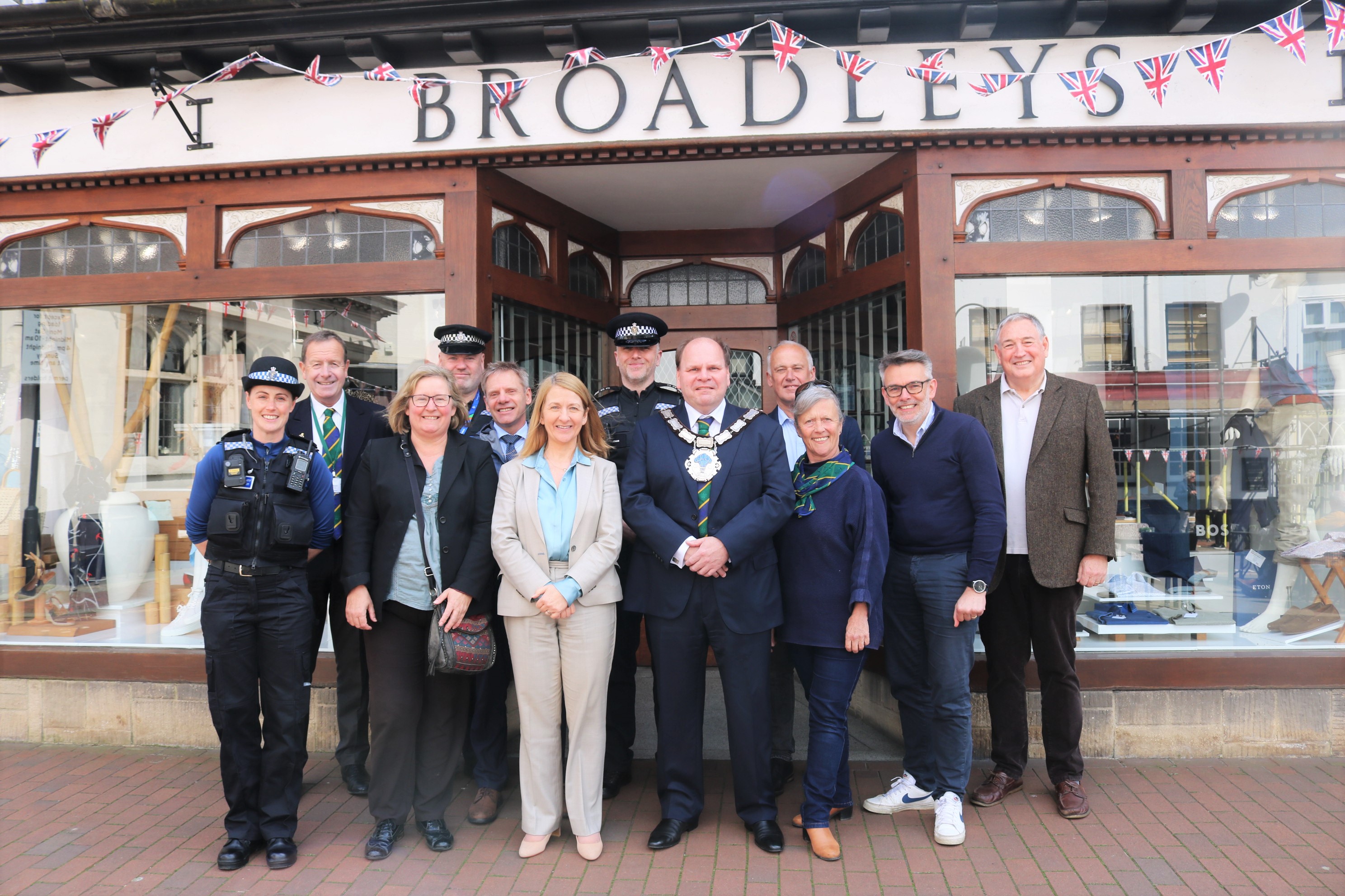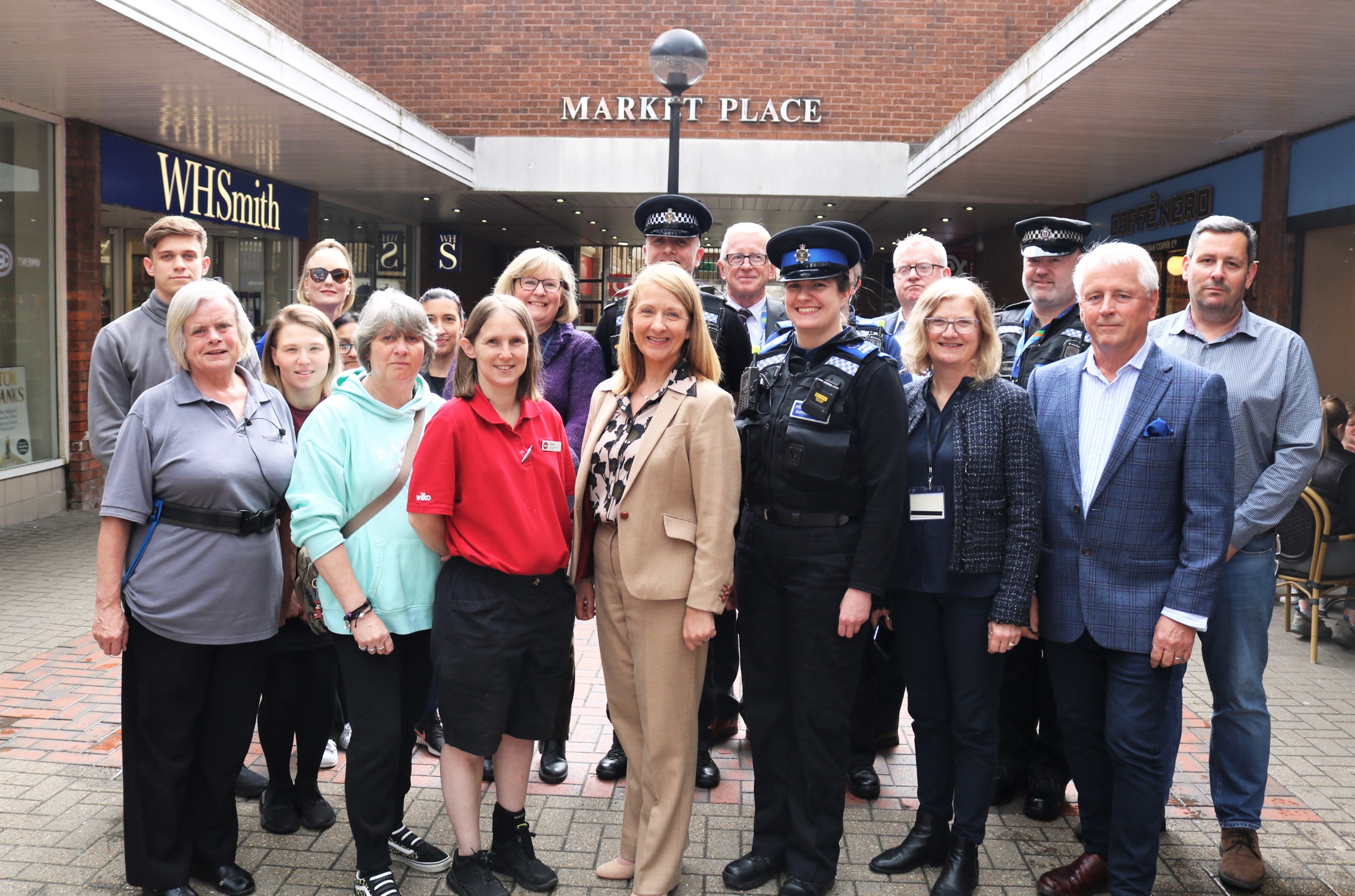 Sussex Police Sgt Anthony Bentham, Sussex Police PC Marvin Lucas, Cllr Rex Whittaker (Chair of EGTC Public Services), Graham Russell (Chair of East Grinstead Business Association), Cllr John Dabell, Sussex Police Business Crime Lead Chris Neilson, Cllr Steve Ody, Mandy Cunningham (MSDC), Sussex PCC Katy Bourne, Town Mayor Cllr Adam Peacock and Cllr Julie Mockford
